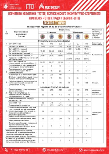 Десятая ступень комплекса ГТО предназначена для мужчин и женщин в возрасте от 30 до 34 лет.