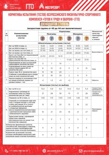 🌟 Данная ступень комплекса ГТО разработана для мужчин и женщин в возрасте от 40 до 44 лет, основной целью которой является сохранение здорового состояния организма и активизация физической активности среди взрослого населения старше сорока лет.